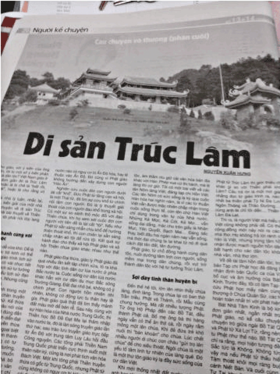 Tôi không phải nhà lý luận, nhắc lại, đây chỉ là tâm sự, kiến giải của một nhà văn. Đây là câu chuyện về di sản Trúc Lâm, chứ không phải bài thuyết về Thiền Trúc Lâm. Dĩ nhiên, tôi phải nói lớp lang một chút.